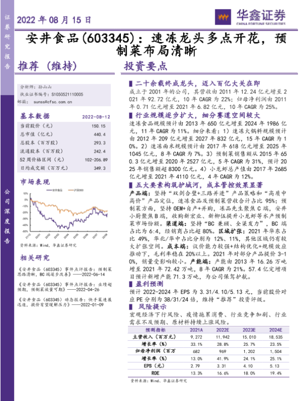 【华鑫证券】【20220815】安井食品(603345):速冻龙头多点开花,预制菜布局清晰-58页
