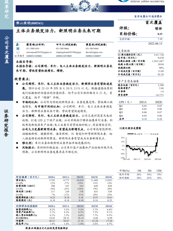 【国泰君安证券】【20220815】佛山照明(000541)主体业务焕发活力,新照明业务未来可期-53页