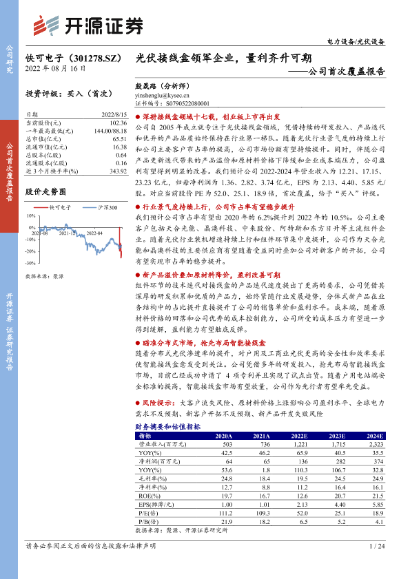 【开源证券】【20220816】快可电子-301278.SZ-公司首次覆盖报告:光伏接线盒领军企业,量利齐升可期-24页