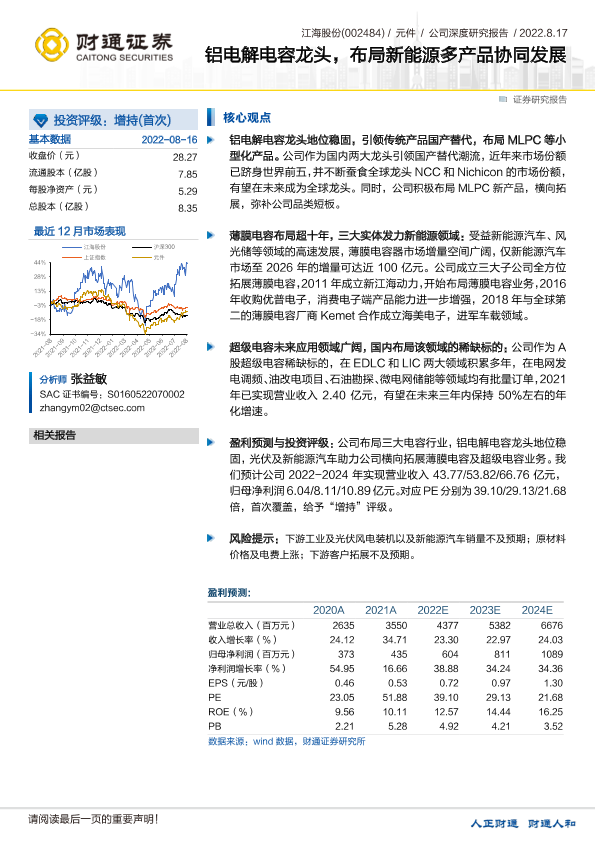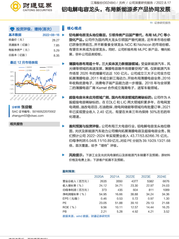 【财通证券】【20220817】江海股份-铝电解电容龙头,布局新能源多产品协同发展-33页