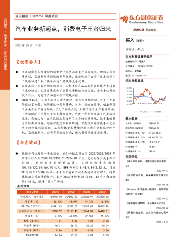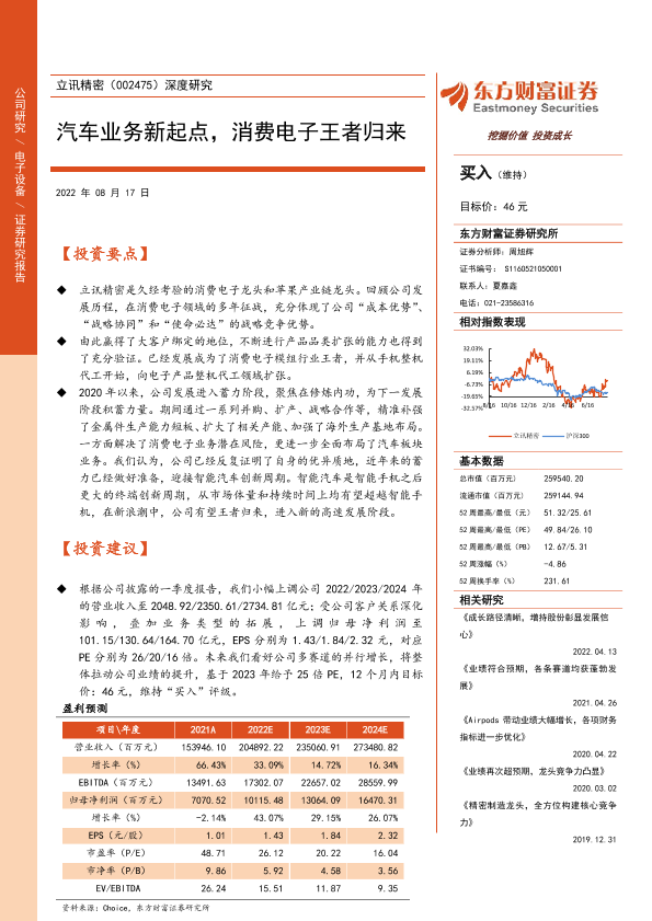【东方财富证券】【20220817】立讯精密(002475)深度研究:汽车业务新起点,消费电子王者归来-27页