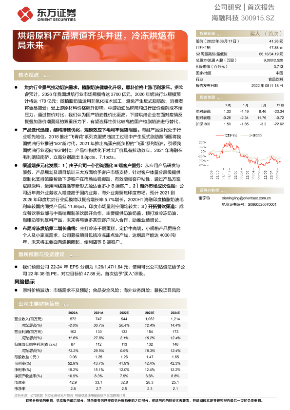 【东方证券】【20220818】海融科技-300915.SZ-烘焙原料产品渠道齐头并进,冷冻烘焙布局未来-37页