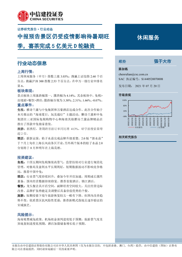 【中信建投证券】【20210720】休闲服务行业:中报预告景区仍受疫情影响待暑期旺季,喜茶完成5亿美元D轮融资-15页