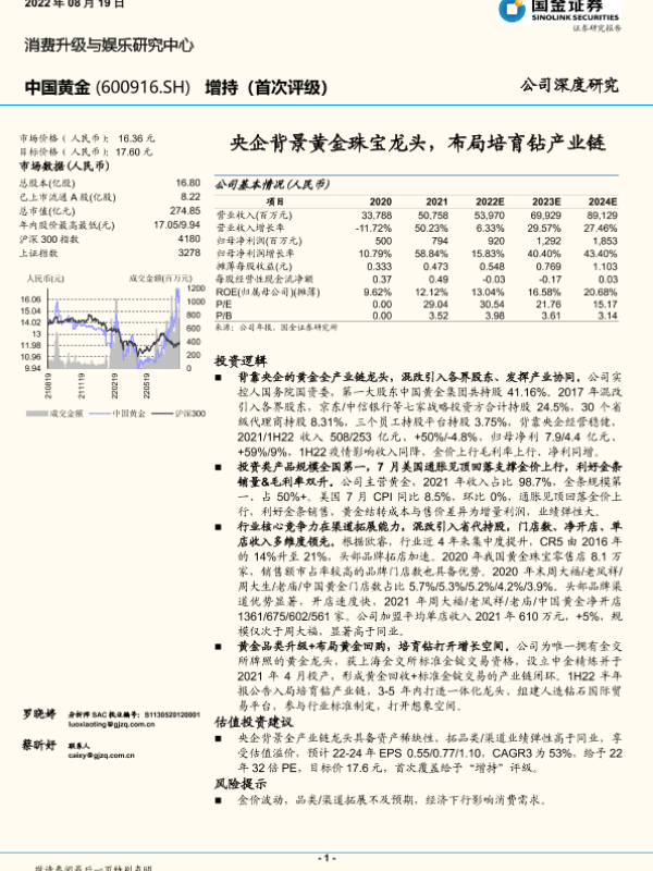 【国金证券】【20220819】央企背景黄金珠宝龙头,布局培育钻产业链-32页