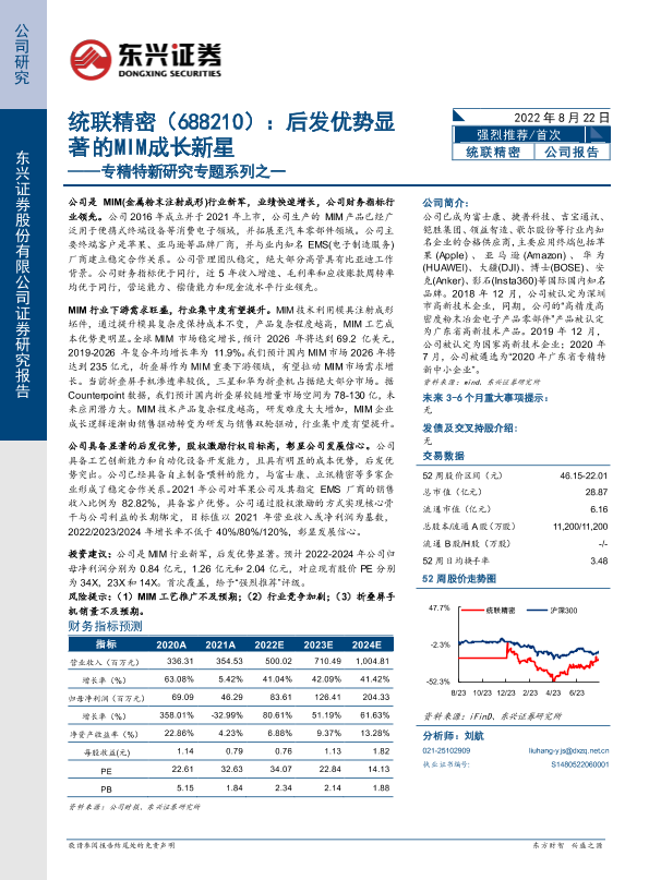 【东兴证券】【20220822】统联精密:后发优势显著的MIM成长新星-20页