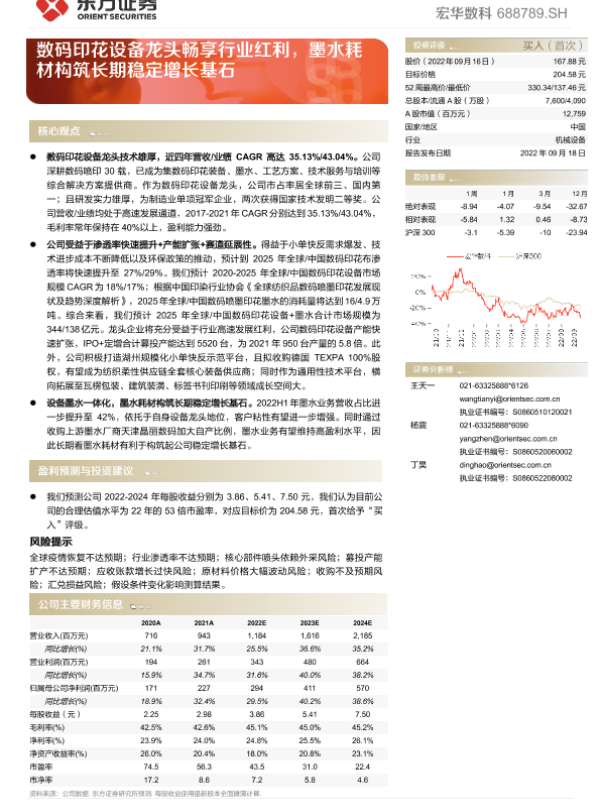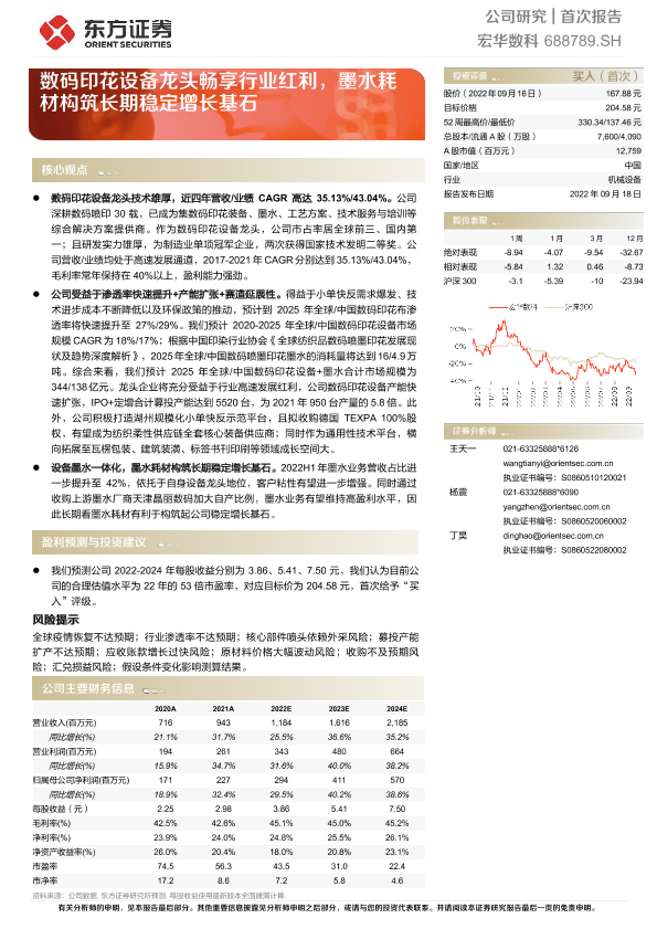 【东方证券】【20220918】宏华数科-数码印花设备龙头畅享行业红利,墨水耗材构筑长期稳定增长基石-31页