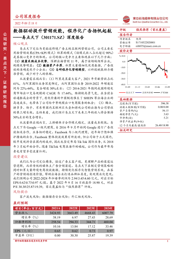 【东亚前海证券】【20220918】数据驱动提升营销效能,程序化广告扬帆起航——易点天下(301171.SZ)深度报告-53页