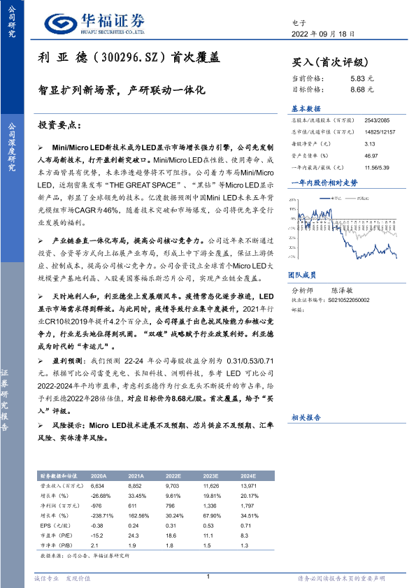 【华福证券】【20220918】利亚德(300296.SZ)首次覆盖:智显扩列新场景,产研联动一体化-27页