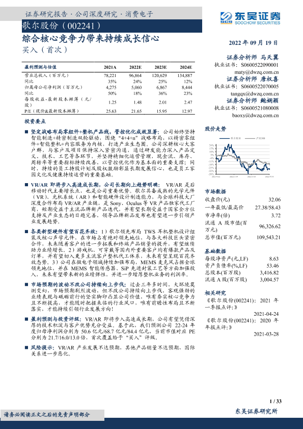 【东吴证券】【20220919】歌尔股份:综合核心竞争力带来持续成长信心-33页