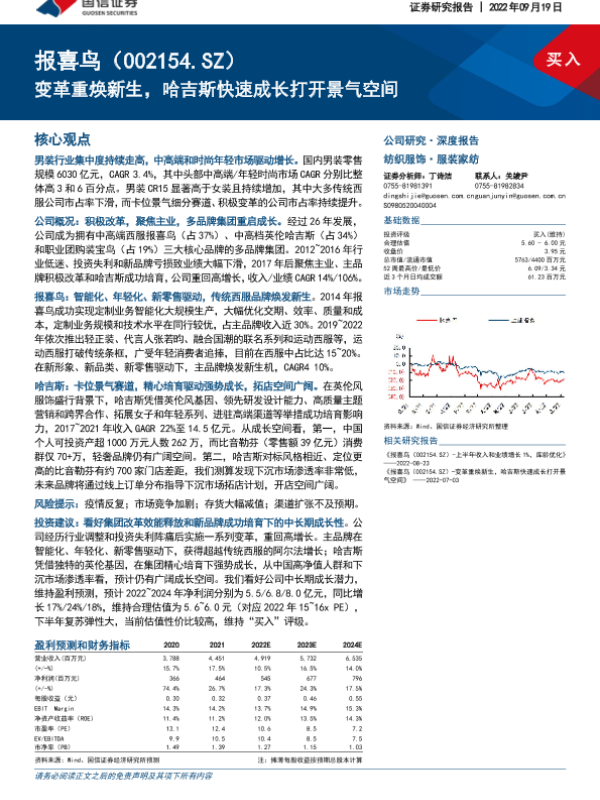 哈吉斯 多品牌战略 市场分析 报喜鸟 男装行业