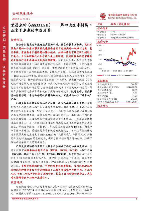 【东亚前海证券】【20220918】荣昌生物——第四次全球制药工业变革浪潮的中国力量-100页