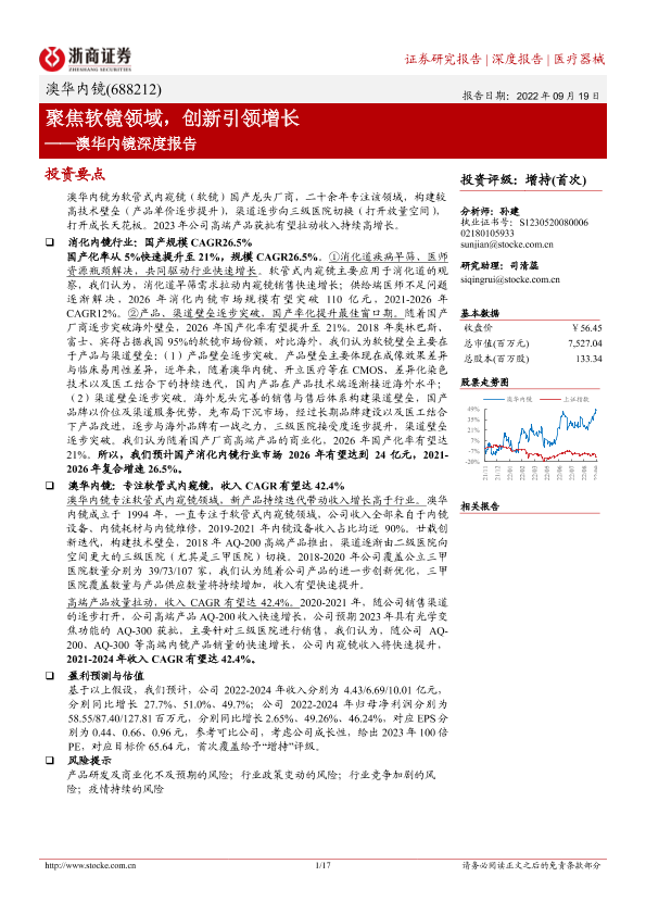 【浙商证券】【20220919】澳华内镜深度报告:聚焦软镜领域,创新引领增长-17页