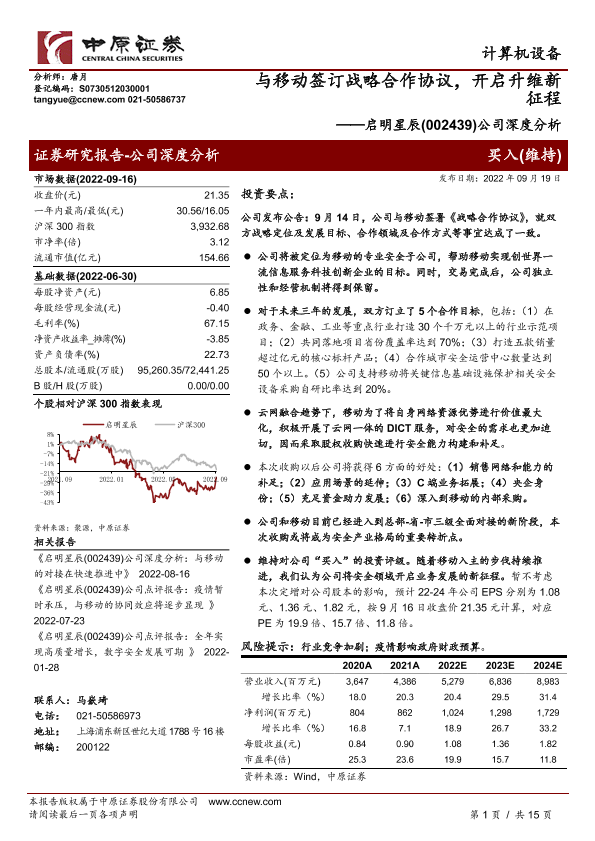 【中原证券】【20220919】与移动签订战略合作协议,开启升维新征程-15页