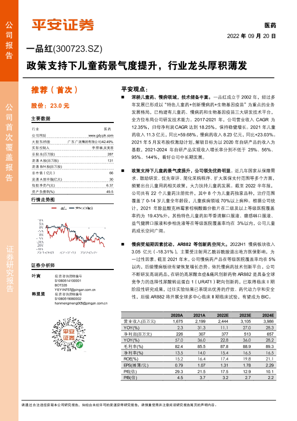 【平安证券】【20220920】政策支持下儿童药景气度提升,行业龙头厚积薄发-26页