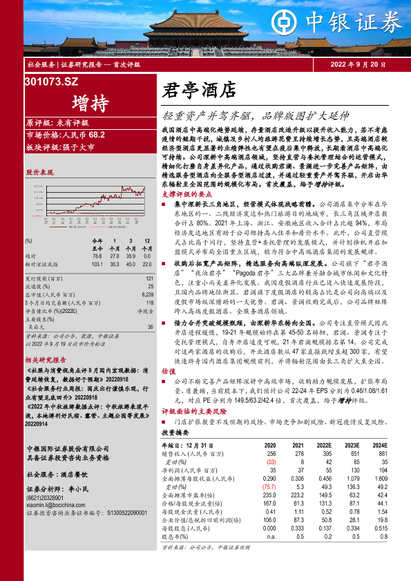 【中银证券】【20220920】君亭酒店:轻重资产并驾齐驱,品牌版图扩大延伸-32页
