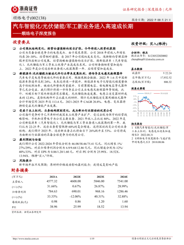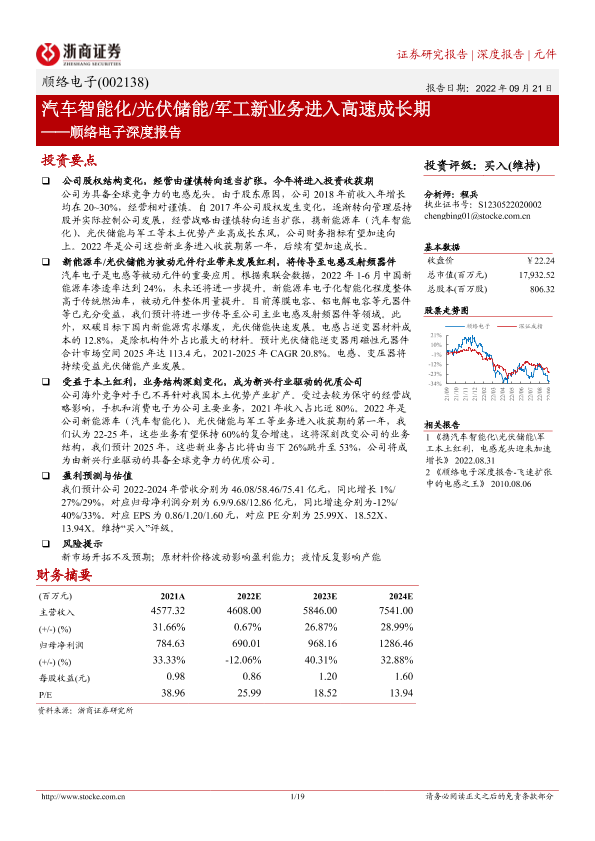 【浙商证券】【20220921】顺络电子深度报告:汽车智能化 光伏储能 军工新业务进入高速成长期-19页