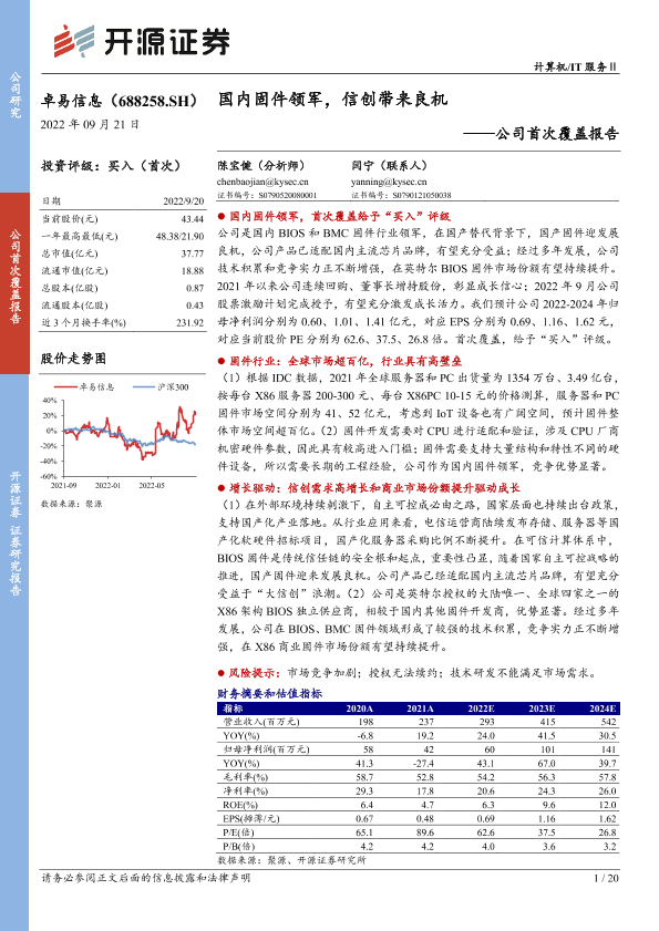【开源证券】【20220921】卓易信息-688258.SH-公司首次覆盖报告:国内固件领军,信创带来良机-20页