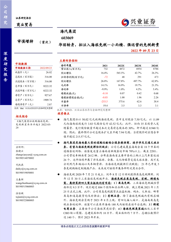 【兴业证券】【20220923】华丽转身,拟注入海旅免税—小而精、强运营的免税新贵-44页