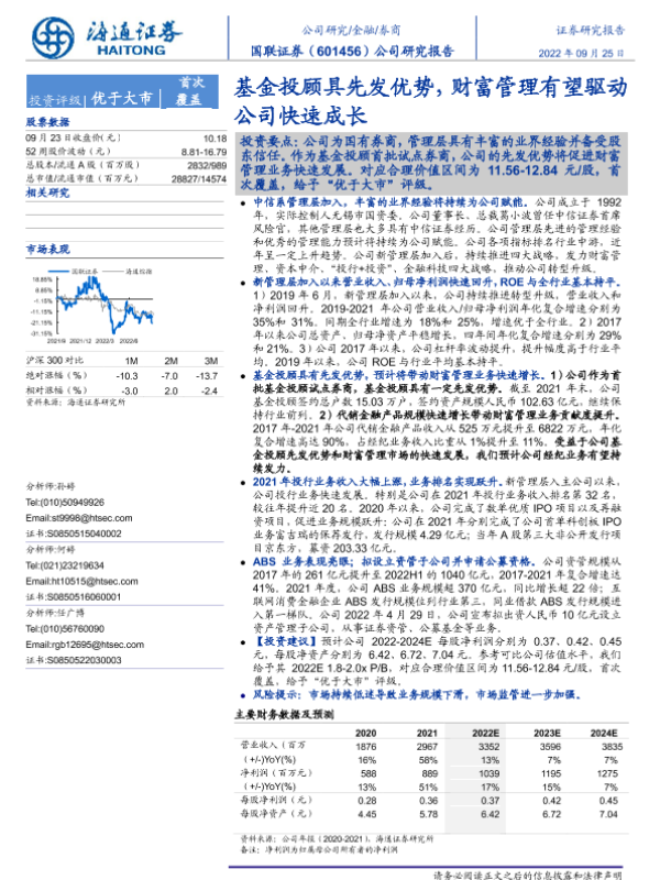 【海通证券】【20220925】国联证券-601456.SH-基金投顾具先发优势,财富管理有望驱动公司快速成长-26页