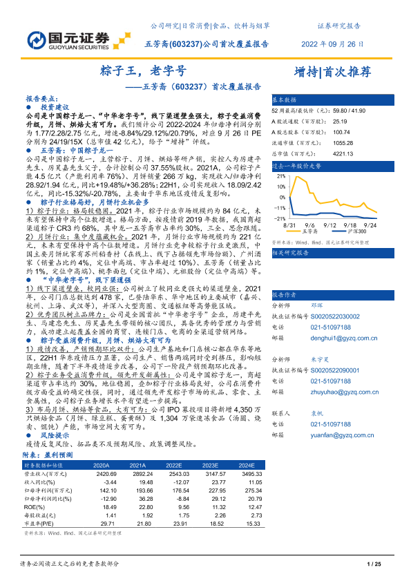 【国元证券】【20220926】20220926-国元证券-五芳斋-603237.SH-首次覆盖报告:粽子王,老字号-25页