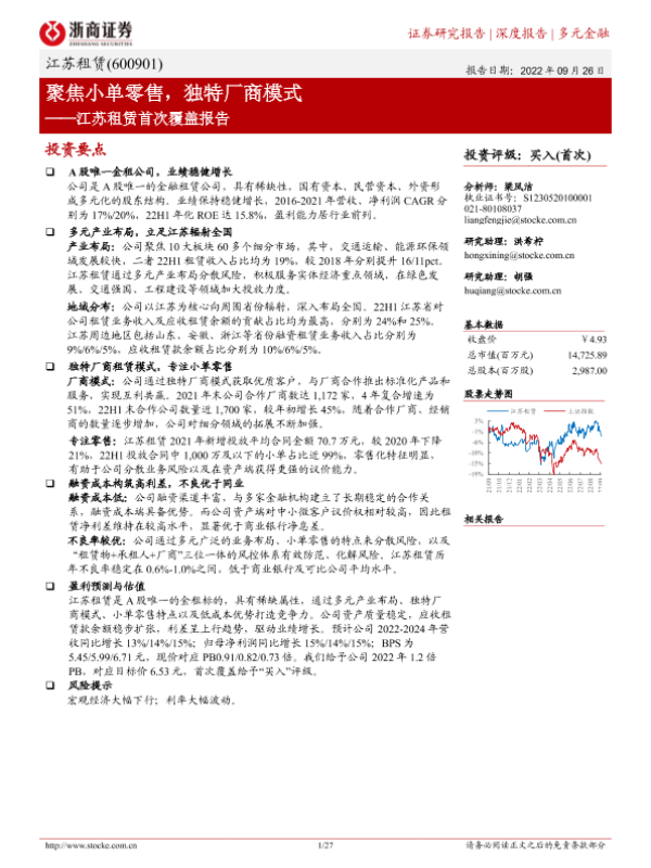 【浙商证券】【20220926】江苏租赁首次覆盖报告:聚焦小单零售,独特厂商模式-27页