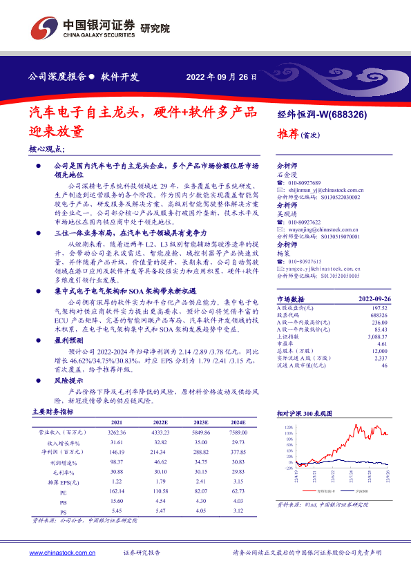 【银河证券】【20220926】汽车电子自主龙头,硬件+软件多产品迎来放量-43页