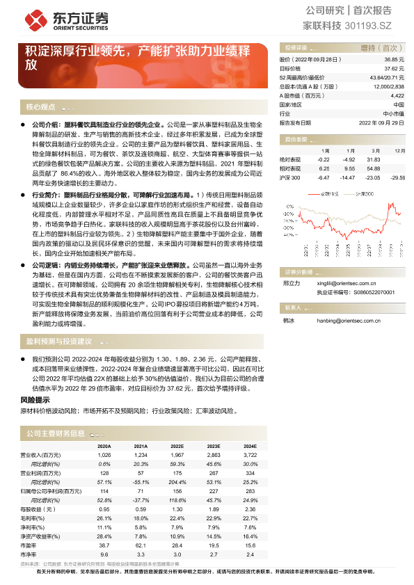 【东方证券】【20220929】家联科技-积淀深厚行业领先,产能扩张助力业绩释放-27页