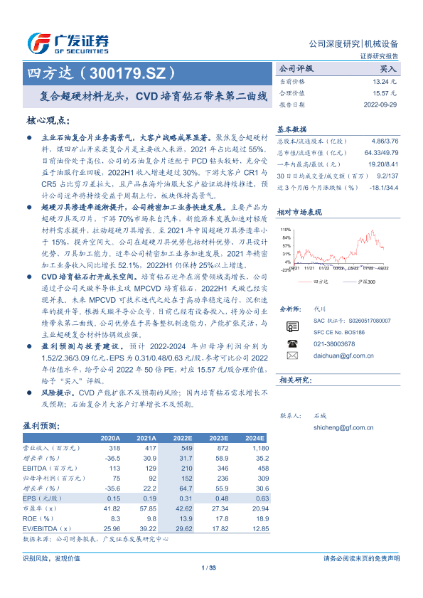 【广发证券】【20220929】四方达(300179.SZ)复合超硬材料龙头,CVD培育钻石带来第二曲线-33页