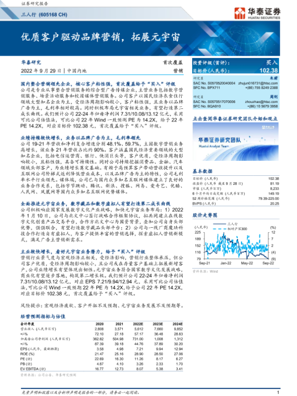 【华泰证券】【20220929】优质客户驱动品牌营销,拓展元宇宙-22页