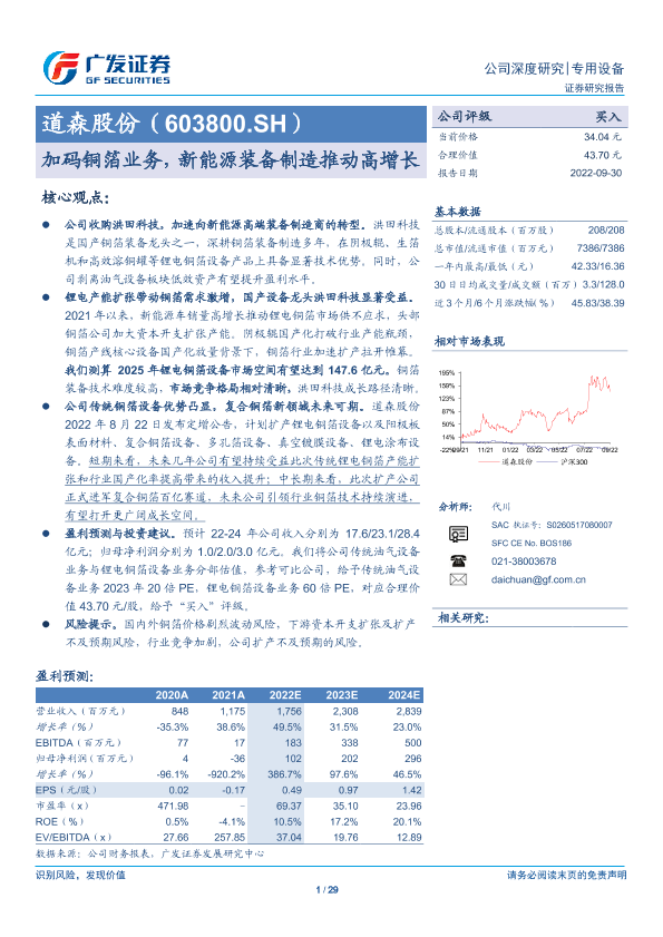 【广发证券】【20220930】加码铜箔业务,新能源装备制造推动高增长-29页