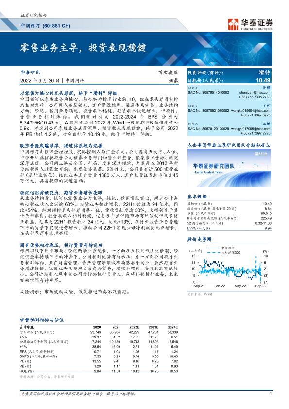 【华泰证券】【20220930】中国银河(601881 CH)零售业务主导,投资表现稳健-23页