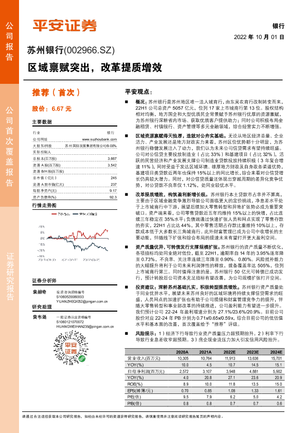 【平安证券】【20221001】苏州银行-002966.SZ-区域禀赋突出,改革提质增效-25页