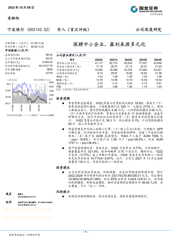 【国金证券】【20221009】20221009-国金证券-宁波银行-002142.SZ-深耕中小企业,盈利来源多元化-28页