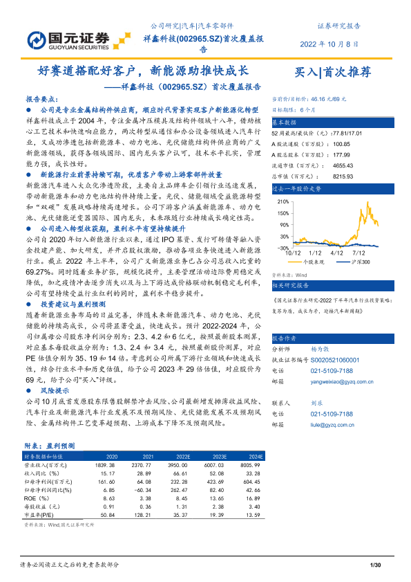 【国元证券】【20221008】祥鑫科技(002965.SZ)首次覆盖报告:好赛道搭配好客户,新能源助推快成长-30页