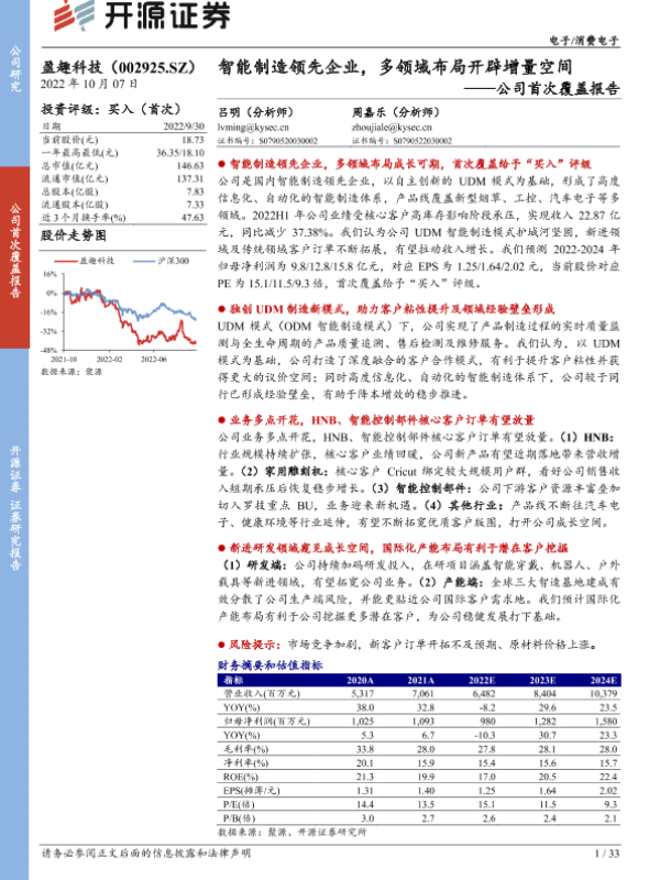 UDM模式 多领域布局 智能制造 盈趣科技 首次覆盖