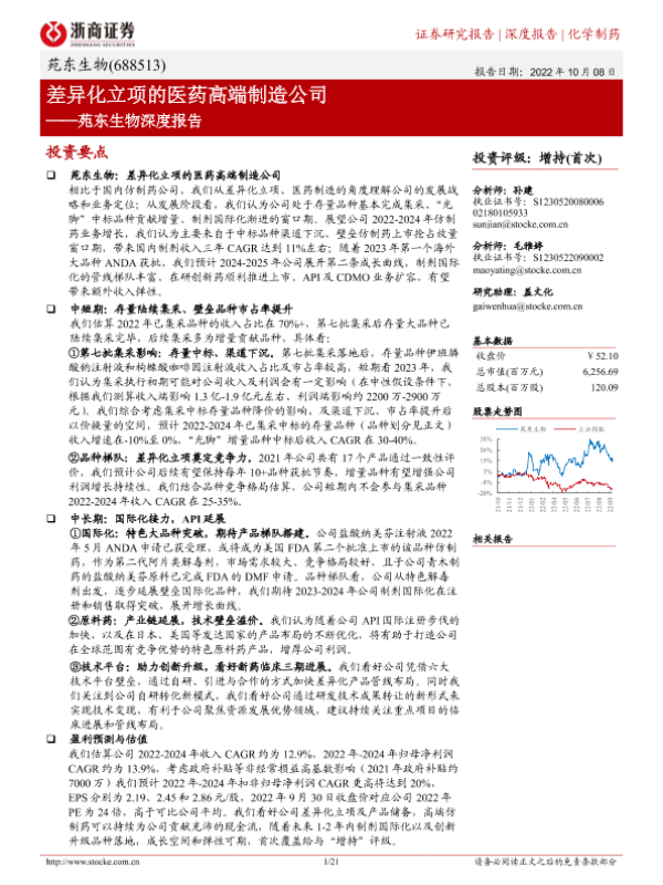 【浙商证券】【20221008】苑东生物深度报告:差异化立项的医药高端制造公司-21页