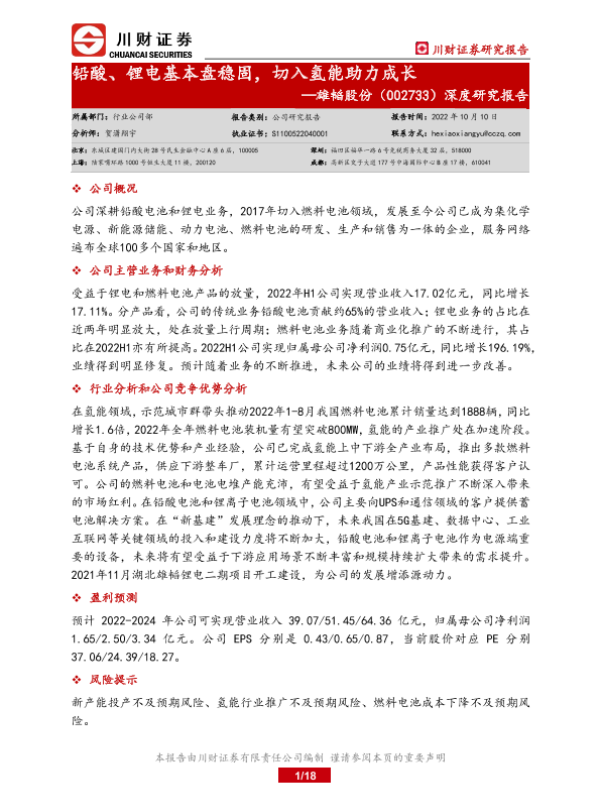 【川财证券】【20221010】铅酸、锂电基本盘稳固,切入氢能助力成长-18页