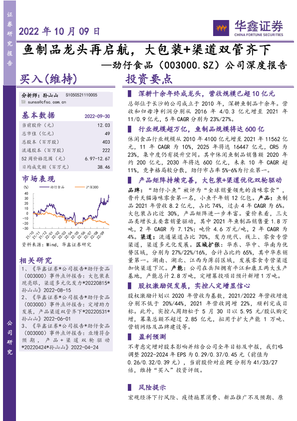 【华鑫证券】【20221009】劲仔食品(003000.SZ)公司深度报告:鱼制品龙头再启航,大包装+渠道双管齐下-37页