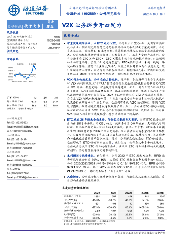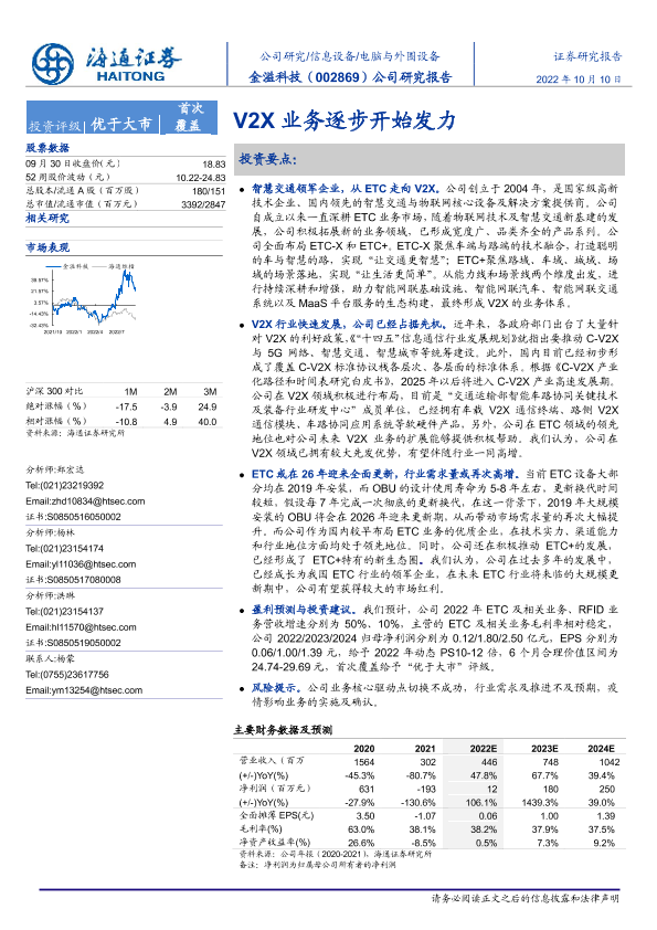 【海通证券】【20221010】20221010-海通证券-金溢科技-002869.SZ-公司研究报告:V2X业务逐步开始发力-24页