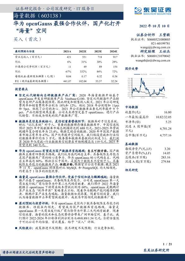 【东吴证券】【20221010】华为openGauss最强合作伙伴,国产化打开“海量”空间-21页