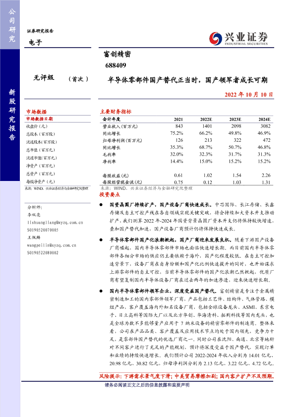 【兴业证券】【20221010】半导体零部件国产替代正当时,国产领军者成长可期-25页