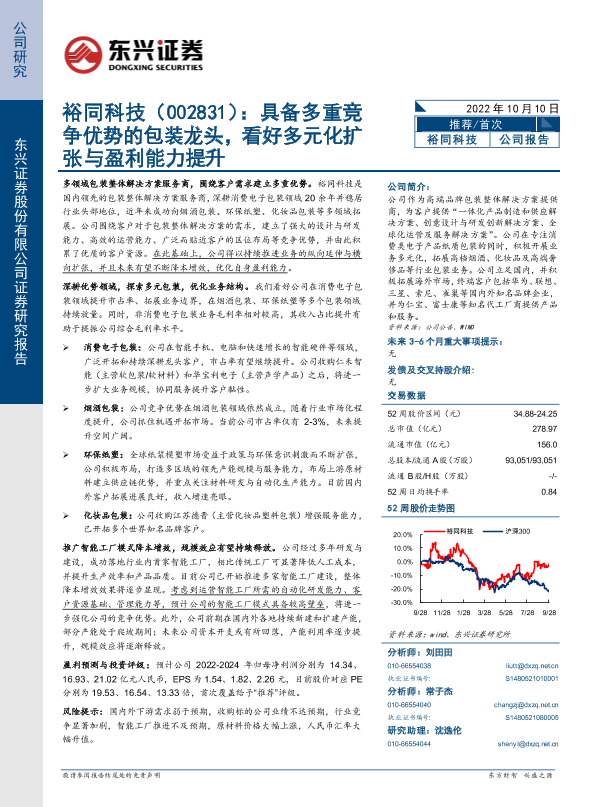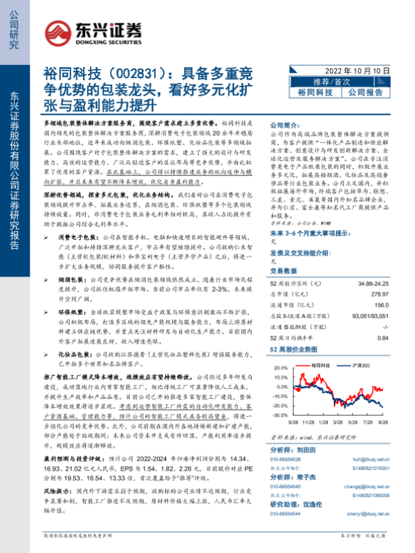 【东兴证券】【20221010】裕同科技:具备多重竞争优势的包装龙头,看好多元化扩张与盈利能力提升-33页