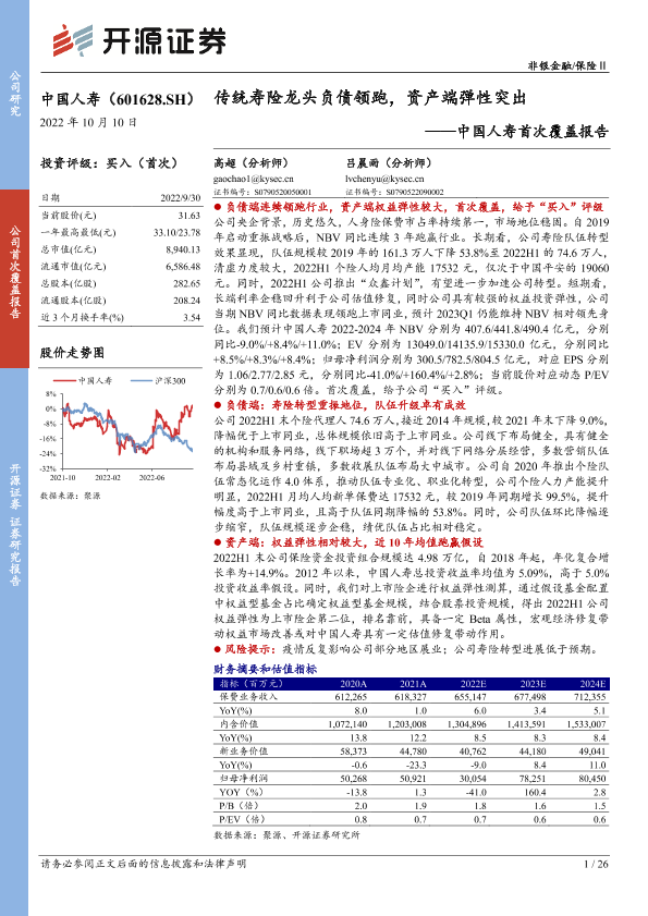 【开源证券】【20221010】中国人寿首次覆盖报告:传统寿险龙头负债领跑,资产端弹性突出-26页