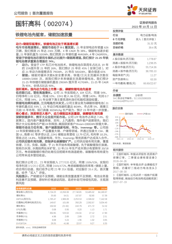 【天风证券】【20221011】天风证券-国轩高科-002074.SZ-铁锂电池先驱者,储能加速放量-23页