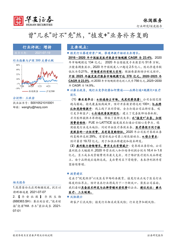 【华安证券】【20210719】休闲服务行业研究:曾“几禾”时不“秃”然,“植发+”业务补齐复购-32页