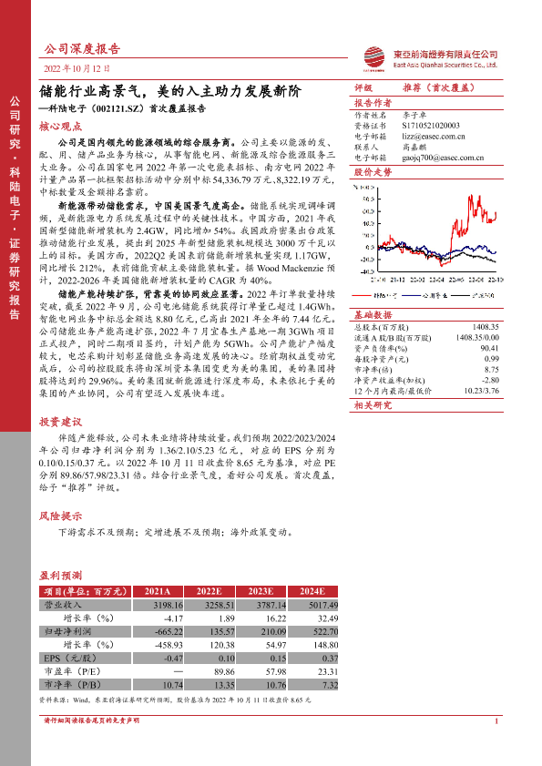 【东亚前海证券】【20221012】20221012-东亚前海证券-科陆电子-002121.SZ-首次覆盖报告:储能行业高景气,美的入主助力发展新阶-25页