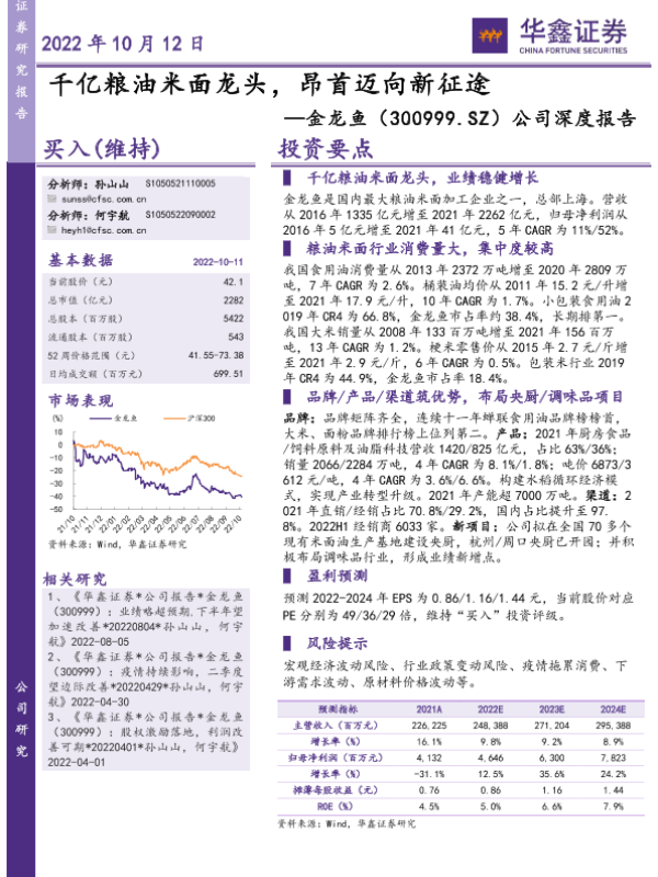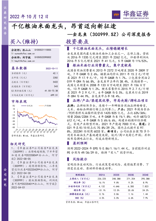 【华鑫证券】【20221012】20221012-华鑫证券-金龙鱼-300999.SZ-公司深度报告:千亿粮油米面龙头,昂首迈向新征途-42页