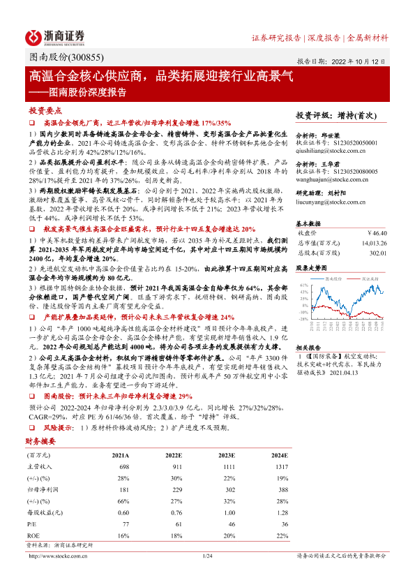 【浙商证券】【20221012】图南股份深度报告:高温合金核心供应商,品类拓展迎接行业高景气-24页