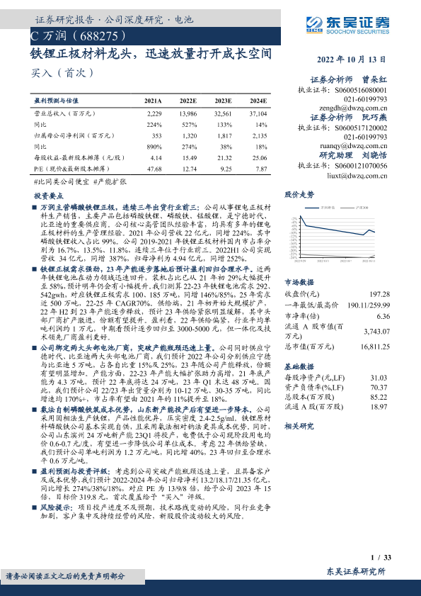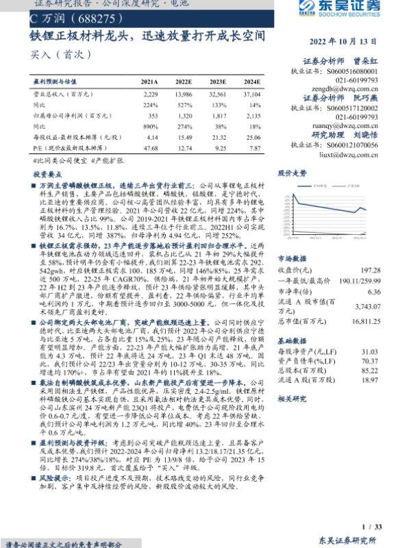 【东吴证券】【20221013】铁锂正极材料龙头,迅速放量打开成长空间-33页
