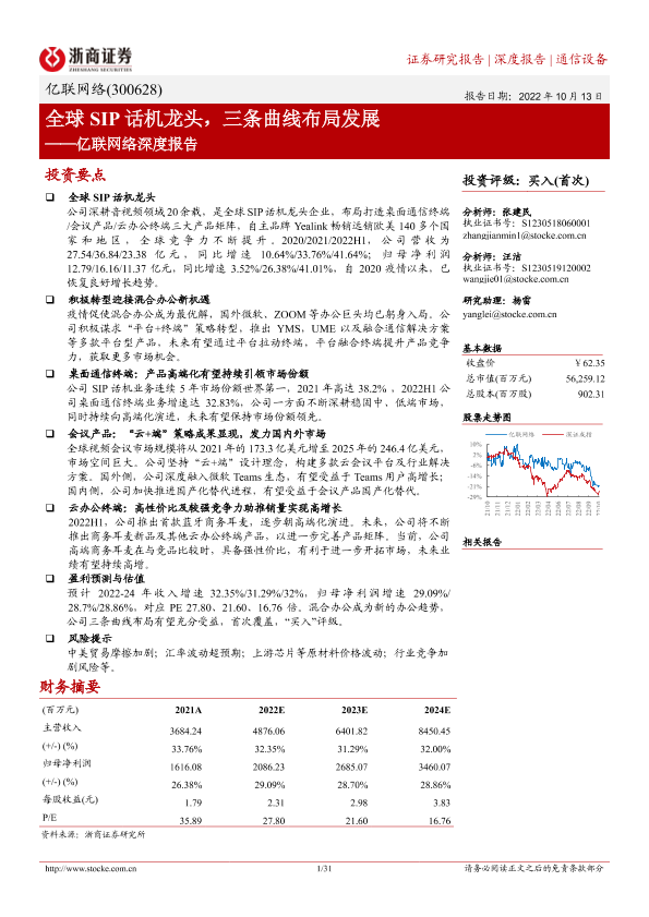 【浙商证券】【20221013】亿联网络深度报告:全球SIP话机龙头,三条曲线布局发展-31页